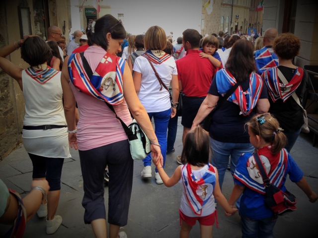 Take, for instance, a baby girl “born into” the Giraffe. Even if she moved across town or to another country later in life, she would remain a Giraffe. In other words, to be born in a contrada is essentially the gold standard of community membership. That person has a special place—a home—and a dizzying array of extended family members for life, no questions asked. (End Excerpt).