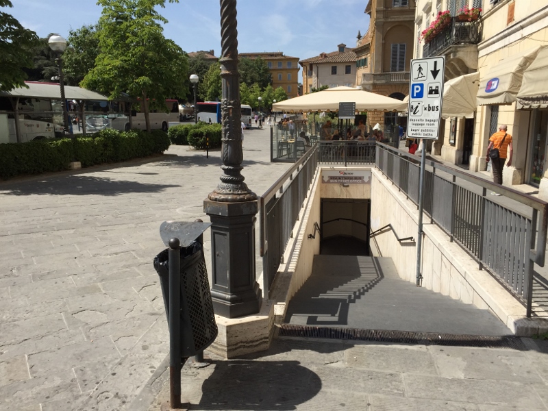 This is not intuitive, either. Siena’s bus ticket office is located beneath Piazza Gramsci. There are multiple “tunnel” entrances (like subway stops) at Gramsci to enter downstairs. This has been recently renovated, so it’s a very nice, clean facility. Along the main hallway (closest to the west/far side of the bus terminal) is a side office for ticket purchases. There is a new lighted sign hanging from the ceiling that reads “Bus Ticket Office” in English. Inside you will see the expected ticket windows, agents, and designated lines. (The agents can usually speak partial English for basic travel information, though I like to practice my Italian if possible). For day or shorter overnight trips, I recommend purchasing your return tickets at the same time so you don’t need to worry about it at your destination. Just keep them in a safe place. The tickets are universal and can be used on any scheduled bus on that route. When boarding the bus, always validate your ticket by inserting it into the yellow(?) box, providing a time/date stamp. Keep your ticket somewhere accessible during your trip, as police officers sometimes board the bus to check for valid tickets. Don’t get caught without one! This is how their bus system works.