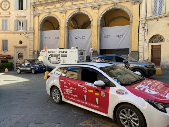 Siena’s taxi service is extensive for a city of this size, with its web site (in English here) claiming to have 55 vehicles and 60 drivers in service. When walking in or around Siena, they are seemingly everywhere, and many visitors depend on them. The company is part of a unified consortium, so all cars are the same color (white) with “taxi” sign boards on the top. They have a diverse fleet of smaller and larger vehicles depending upon the need. The taxis also enjoy privileged access into the historic center, so from the train station or elsewhere they can take you to nearly any specific address in the city (or close to it if you are staying in a narrow alley somewhere).